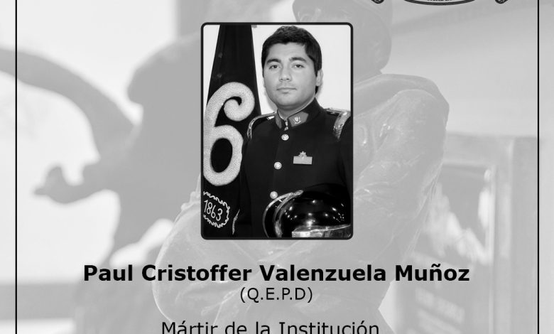 Con profundo pesar, expresamos nuestras condolencias a la Sexta Compañía de Bomberos Santiago y a la familia del Voluntario Mártir, Ayudante 1° don Paul Valenzuela Múñoz, por su lamentable fallecimiento, ocurrido en acto de servicio durante la tarde del jueves, en el incendio registrado en la intersección de Domeyko con Avenida España.